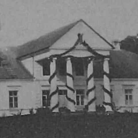 Парадный вход был украшен крупным четырехколонным портиком с ионическим ордером. Фронтон был сделан треугольным. Пристроили небольшую террасу с балконом с видом на парк.
